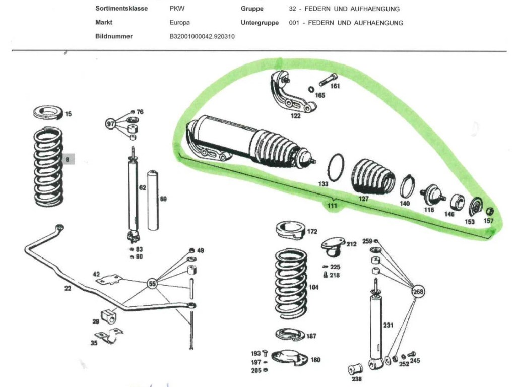 上の図の緑のペンで囲まれた部品が欲しいとのご要望でした。メルセデスベンツ280Sの部品だとのことです。日本で探したそうですがディーラーでは欠品扱いになっており、ディーラー以外でも在庫している部品屋さんは見つからなかったそうです。以前取引したアメリカの古いメルセデスベンツ専門のパーツショップも欠品になっていました。他を色々あたりいくつかの候補をご提示させていただきました。